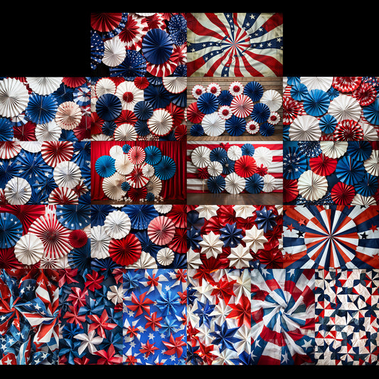 20 Stars and Striped Pinwheel Digital Background Bundle